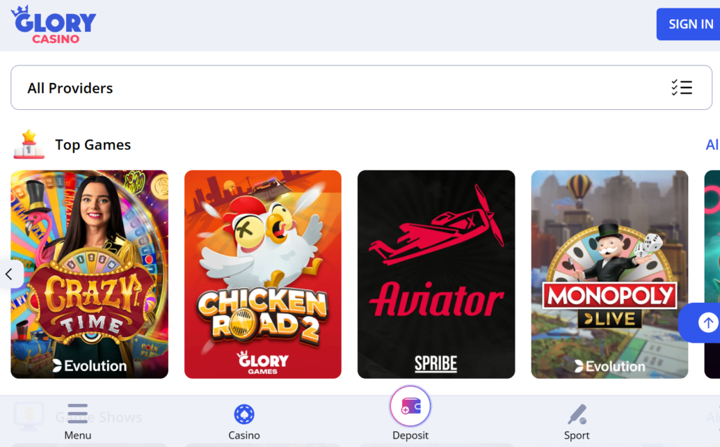 Welcome to the world of Glory Casino games, where the fun and excitement never stop! Launch legendary Aviator and spin Crazy time Glory Casino show to hit the biggest prize in the shortest time. Enjoy 1,000+ game titles from mobile or desktop and don’t worry about your transaction security. Play, enjoy, and catch your luck right now!